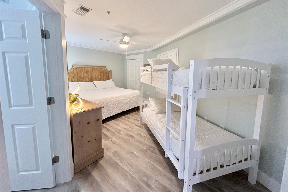 • Guest Bedroom – King Bed + Twin Bunk Beds